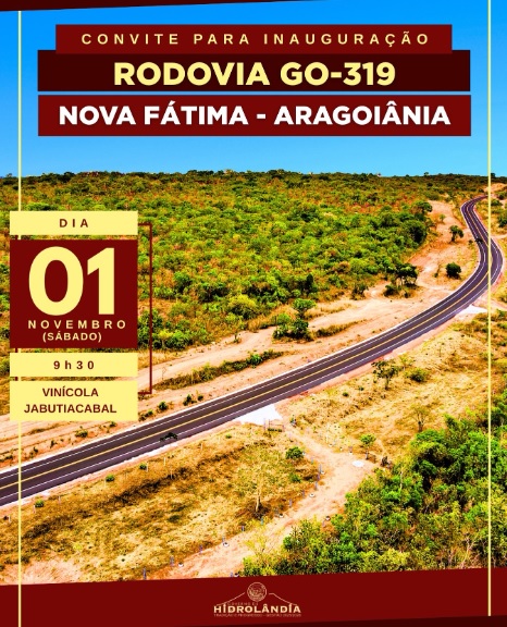 GRANDE INAUGURAÇÃO da Rodovia GO-319, ligando Nova Fátima a Aragoiânia! Uma conquista que vai transformar o desenvolvimento e a mobilidade da nossa região! ðð¨ ð Local: Vinícola Jabutiacabal ð Dia:…