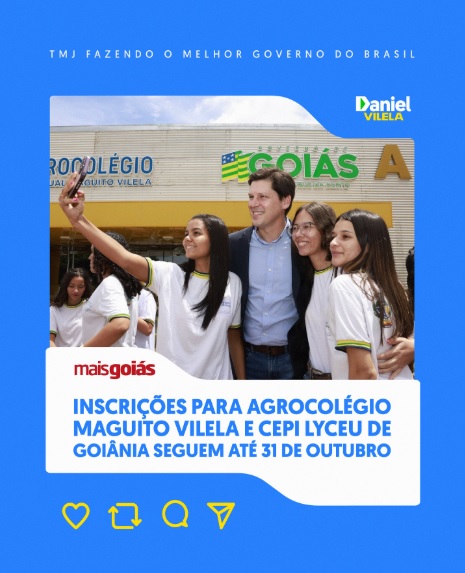 As inscrições para o ano letivo de 2026 seguem abertas no Agrocolégio Estadual Maguito Vilela e no Cepi Lyceu de Goiânia até o dia 31 de outubro.