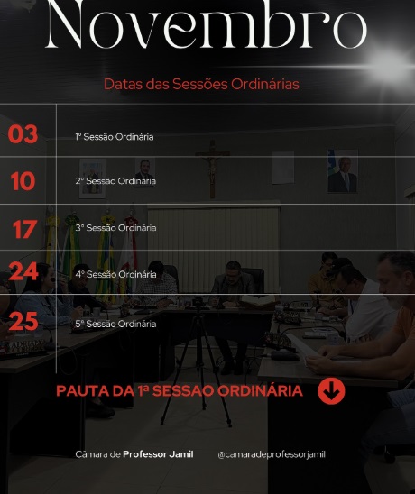 03/11/2025: Câmara Municipal de Professor Jamil-Go – Calendário Legislativo Novembro – 1ª Sessão Ordinária