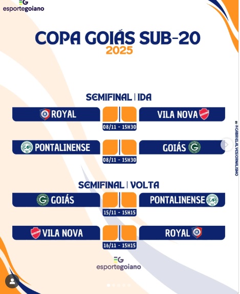 Copa Goiás Sub-20 2025 – 08/11 Semi-Final Ida: CAP Pontalinense x Goiás e 15/11/2025 Semi Final Volta: Goiás x CAP Pontalinense Fonte: esportegoiano e cappontalinense