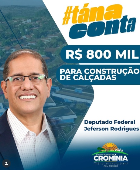 Deputado Federal Jeferson Rodrigues destina recurso de 800 mil reais a construção de calçadas em Cromínia-Go