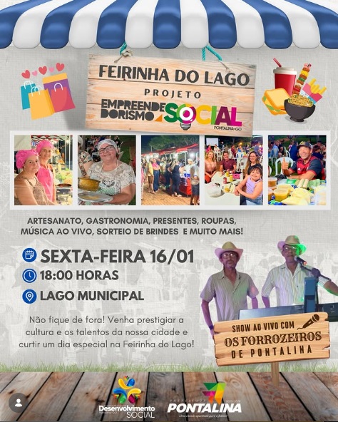 16/01/2026: Feirinha do Empreendedorismo Social no Lago Municipal, Animação Os Forrozeiros de Pontalina-Go