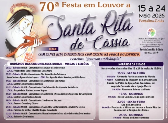 15 à 24/05/2026: 70ª Festa em Louvor a Santa Rita de Cássia, em Pontalina-Go (Programação)